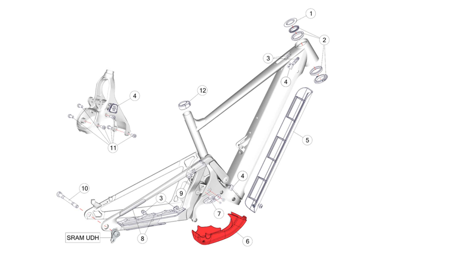 Ricambio originale per il tuo 6080Z. Questo carter motore proteggerà di nuovo il motore Bosch del tuo 6080Z — come se nessuna pietra lo avesse mai baciato con amore.